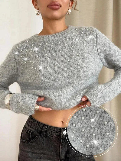 Уютный свитер вязаный Анастасия с добавлением шерсти похож на мех ангоры и обеспечивает тепло и комфорт в осенний и зимний сезоны, а также прохладный летний день. Пушистая вязка, расшитая бусинами и стразами, добавляет особый шарм и легкость. Дизайн джемпера без ворота с круглым вырезом и удлиненными рукавами создает стильный силуэт, который идеально садится по фигуре. Модные манжеты в стиле old money (олд мани) аккуратно обрамляют запястья, придавая образу завершенность. Благодаря нежному пинтерест цвету и декоративным камням жемчужинам кофта имеет нарядный вид, а потому идеально подходит как для офисного и школьного стиля, так и для праздничных мероприятий. Стильный женский свитер — идеальный выбор для учителей, мам и старшеклассниц на 1 сентября. Подходит для школы, создаёт аккуратный и элегантный образ.