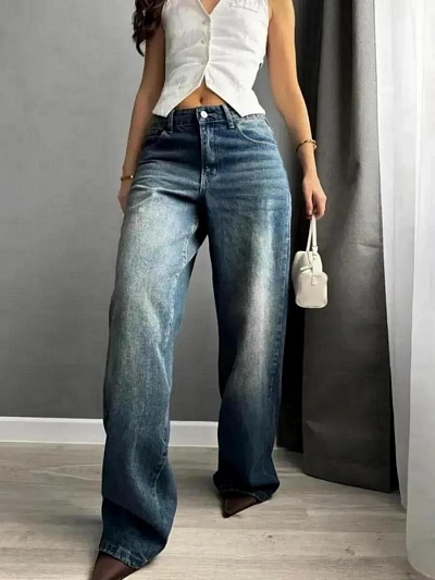 Джинсы прямые широкие багги Балуны 555 - тренд лето осень 2025.